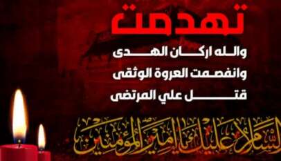 قال الراوي : فاصطفقت أبواب الجامع ، وضجت الملائكة في السماء بالدعاء ، وهبَّتْ ريحٌ عاصفٌ سوداء مظلمة ، ونادى جبرئيل عليه السلام بين السماء والأرض بصوت يسمعه كل مستيقظ : ” تهدمت والله أركان الهدى ، وانطمست والله نجوم السماء وأعلام التقى ، وانفصمت والله العروة الوثقى ، قُتِلَ ابن عم محمد المصطفى ، قُتِلَ الوصي المجتبى ، قُتِلَ علي المرتضى ، قُتِلَ والله سيد الأوصياء ، قتله أشقى الأشقياء “) . انتهى [ بحار الأنوار 42 : 279