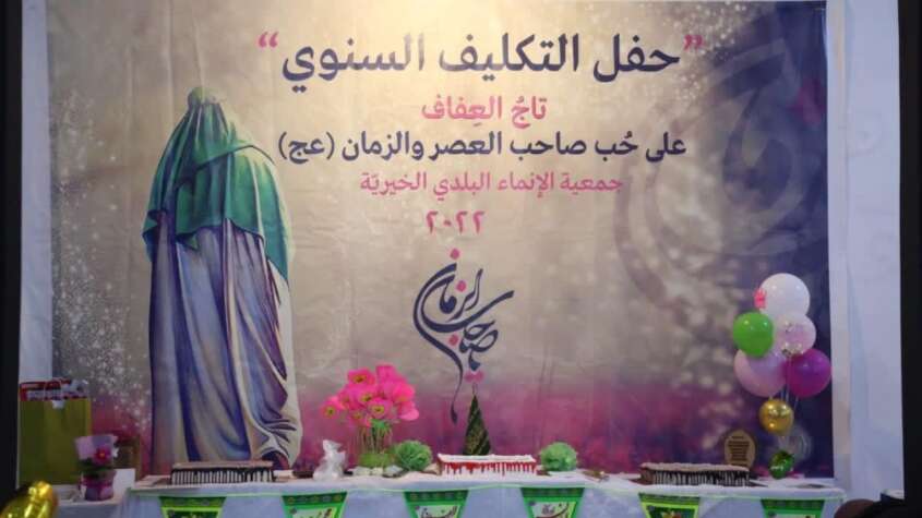 ببركةٍ وتعاون من العتبة الحُسِـينيّة المُقدّسة مُمثّلةً بمدير مركز التبليغ القرآني الدولي ومركز النبي محمد (ص) الثقافي، وعلى حُب صاحب العصر والزمان أقامت جمعية الإنماء البلدي الخيريّة حفل التكليف السنوي لملائكة الرحمة الذين بلغن سن التكليف الإلهي تحت عنوان “تاجُ العِفاف على حُب صاحب العصر والزمان” وذلك في مركز النّبي محمَّد (ص) الثقافي في منطقة الجنوب – صور